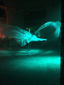 Das Rascheln, Rauschen und Säuseln einer transparenten Abdeckfolie, die eine Performerin durch den Raum kreisen lässt, klingt wie Wind über dem Meer, bald wie ein aufkommender Sturm. Das passt zum Thema, wirkt als Lückenfüller zwischen den Intermezzi dennoch etwas bemüht, zumal die Musiker ein sehr abgestimmt wirkendes Repertoire präsentieren. Der Eindruck loser Bestandteile verstärkt sich, als gegen Ende eine Eurythmistin auftaucht und in wallendem Schleier ein Gedicht vorträgt. Nicht zu vergessen die Malerin, die das Geschehen auf einer Staffelei in Echtzeit auf eine Leinwand pinselt.